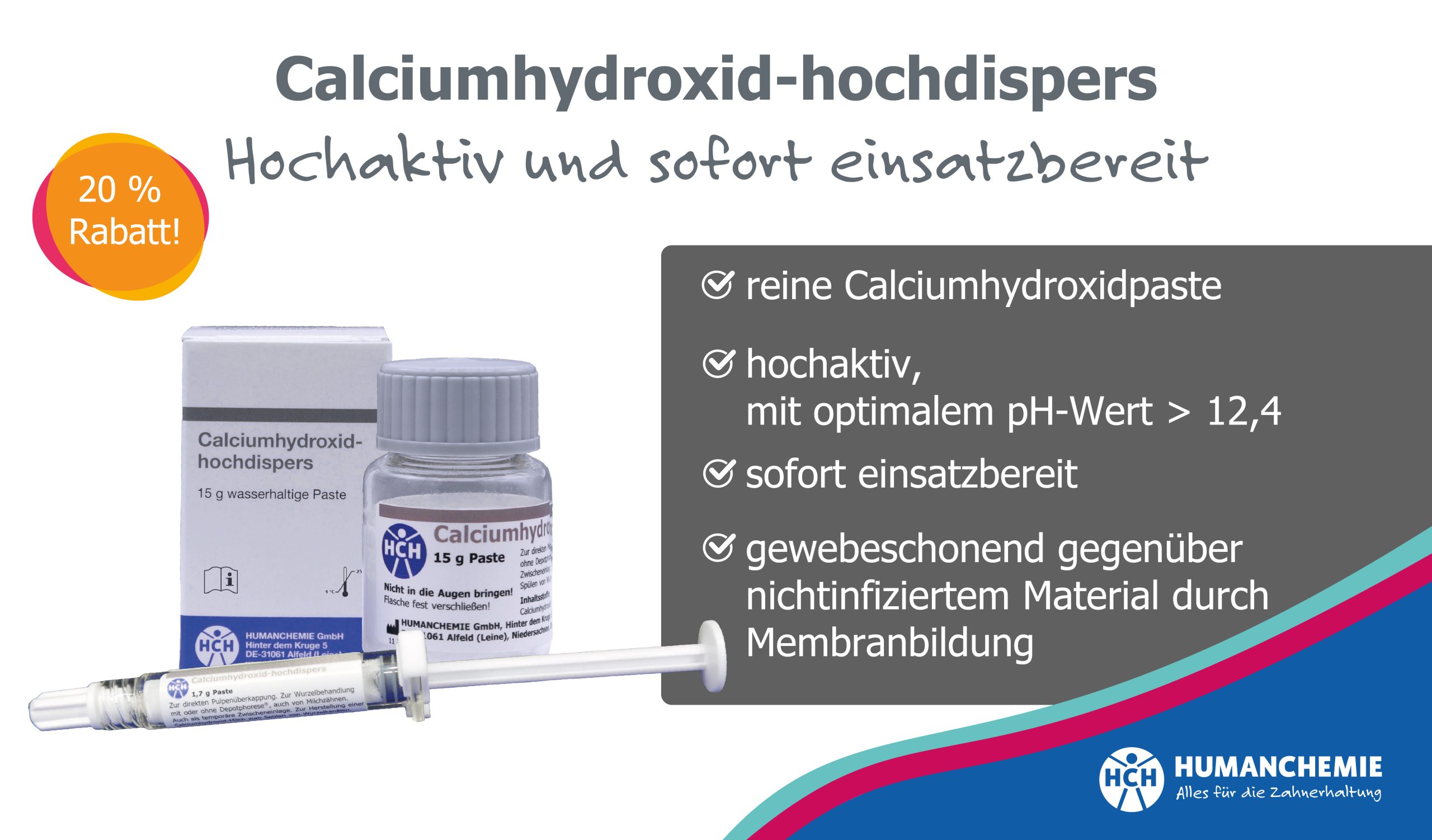 zwei wirksame Produkte für eine antibiotikafreie Wurzelbehandlung. Fertig angerührt und sofort einsatzbereit.