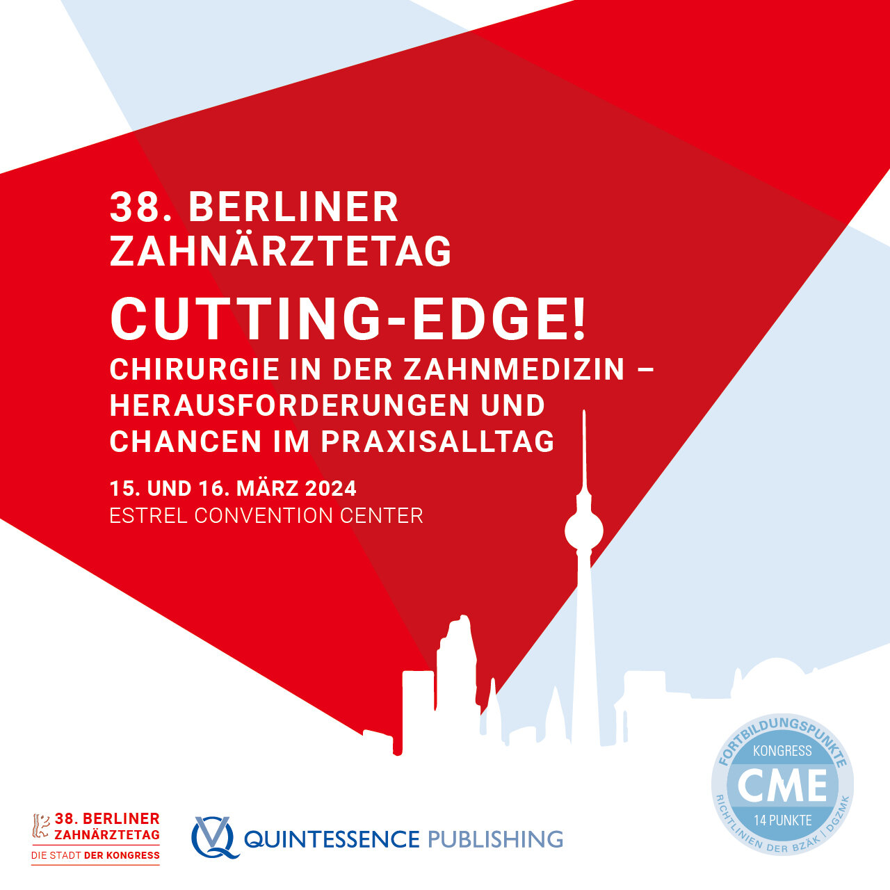Am 9. Mai 2025 lädt der 38. Berliner Zahnärztetag unter dem Motto „Cutting-Edge“ Zahnärztinnen, Zahnärzte und Praxisteams ins Estrel Congress Center in Berlin ein.